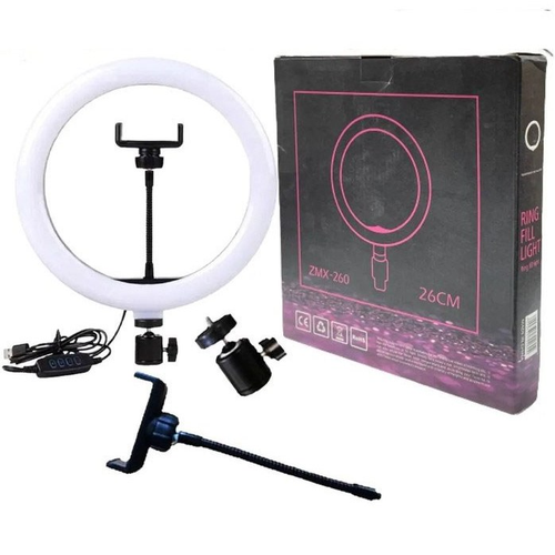 رینگ لایت 10 اینچ زمیکس 26 سانتی به همراه سه پایه دو متری جمع شوند مدل "Ring Light ZMX-260 26CM 10